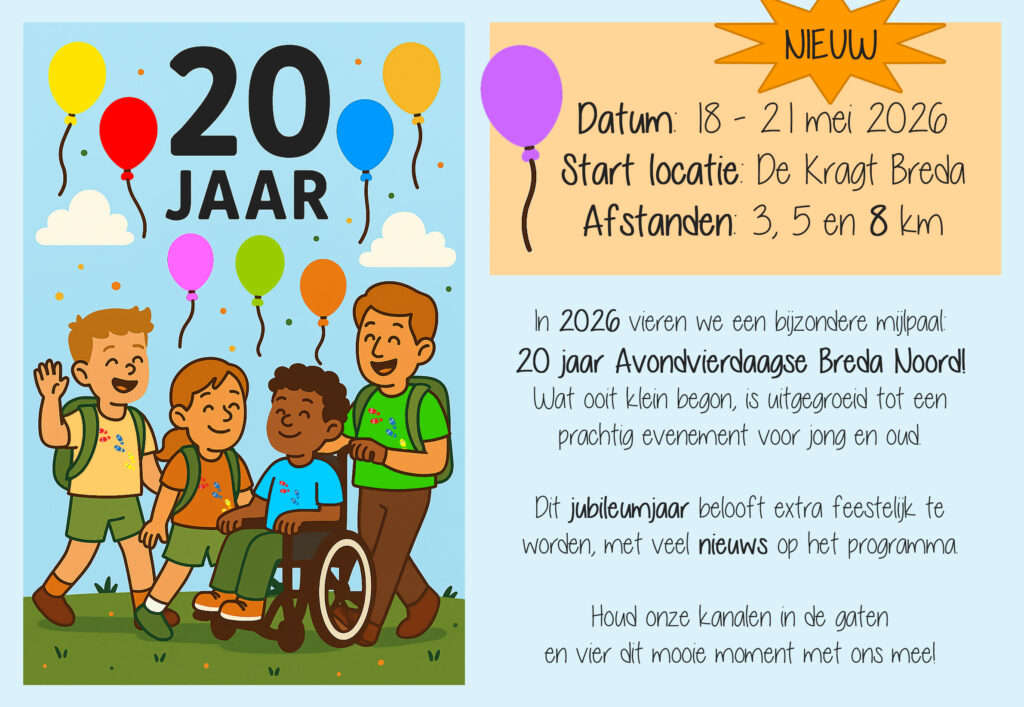 π In 2026 vieren we 20 jaar Avondvierdaagse Bredaβ―Noord! π